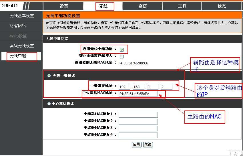 3、設(shè)置DIR-612-A的無線中繼,如圖: