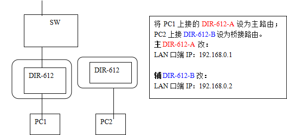 橋接圖: (以2臺(tái)DIR-612為例做橋接)