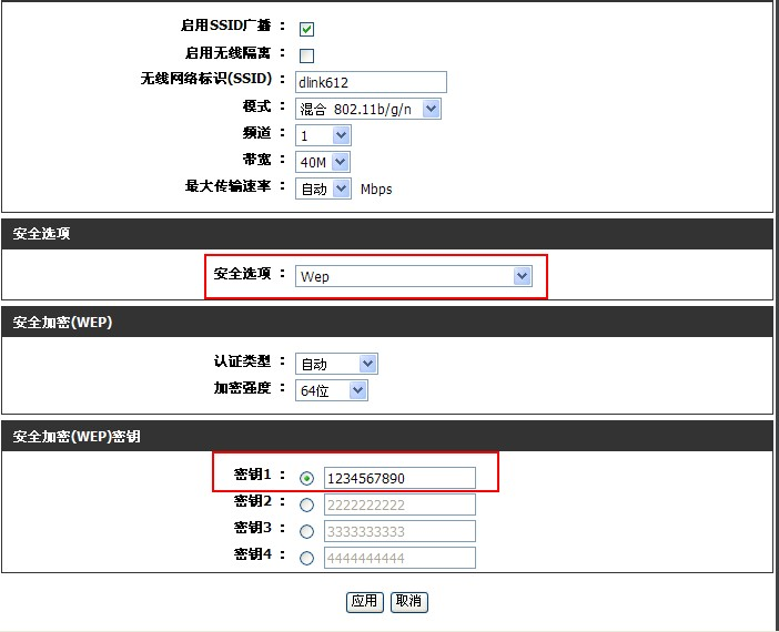 2、設(shè)置主的DIR-612-A的無(wú)線參數(shù),如圖: