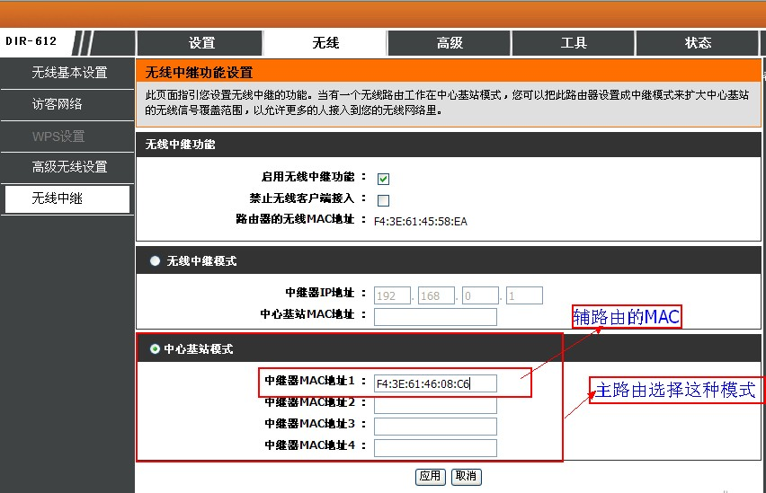 7、設(shè)置輔DIR-612-B的無(wú)線中繼,如圖: